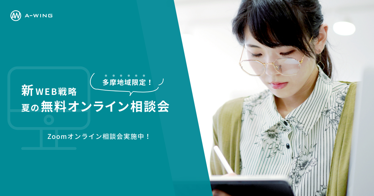 エーウイングでは、「多摩地域限定!新WEB戦略・夏の無料オンライン相談会」を開催中です。