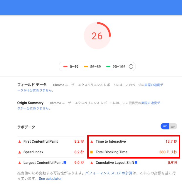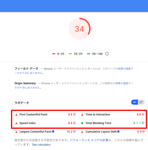今回のサイトの場合、使用しているWEBフォントが評価を下げる要因になっていたことが分かります。