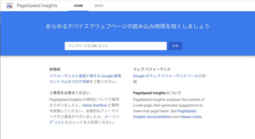 Googleが提供しているページ速度計測ツール「PageSpeed Insights」はこちら。