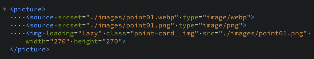 それらを活用し、以下のような記述で次世代フォーマットでの画像設定をします。