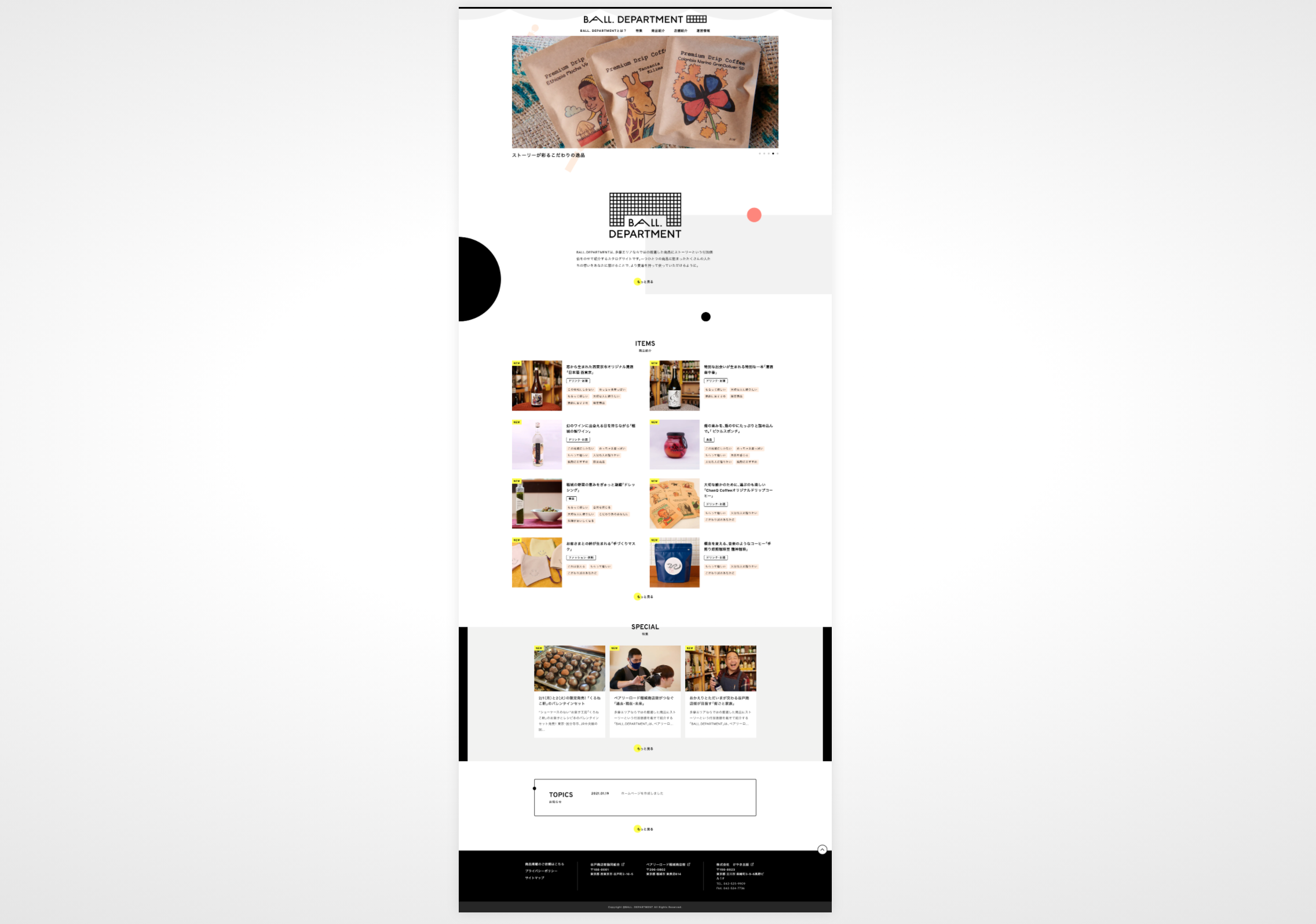 エーウイングでは、BALL.DEPARTMENTのウェブサイトのお手伝いをさせていただいております。