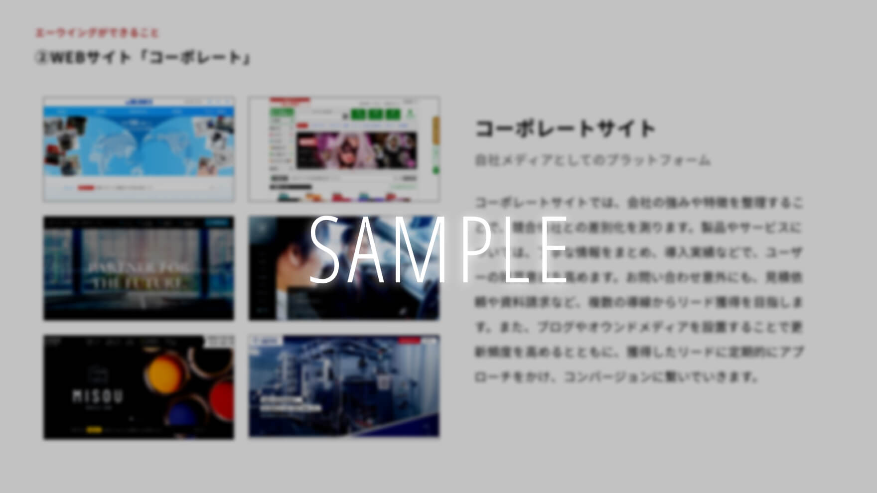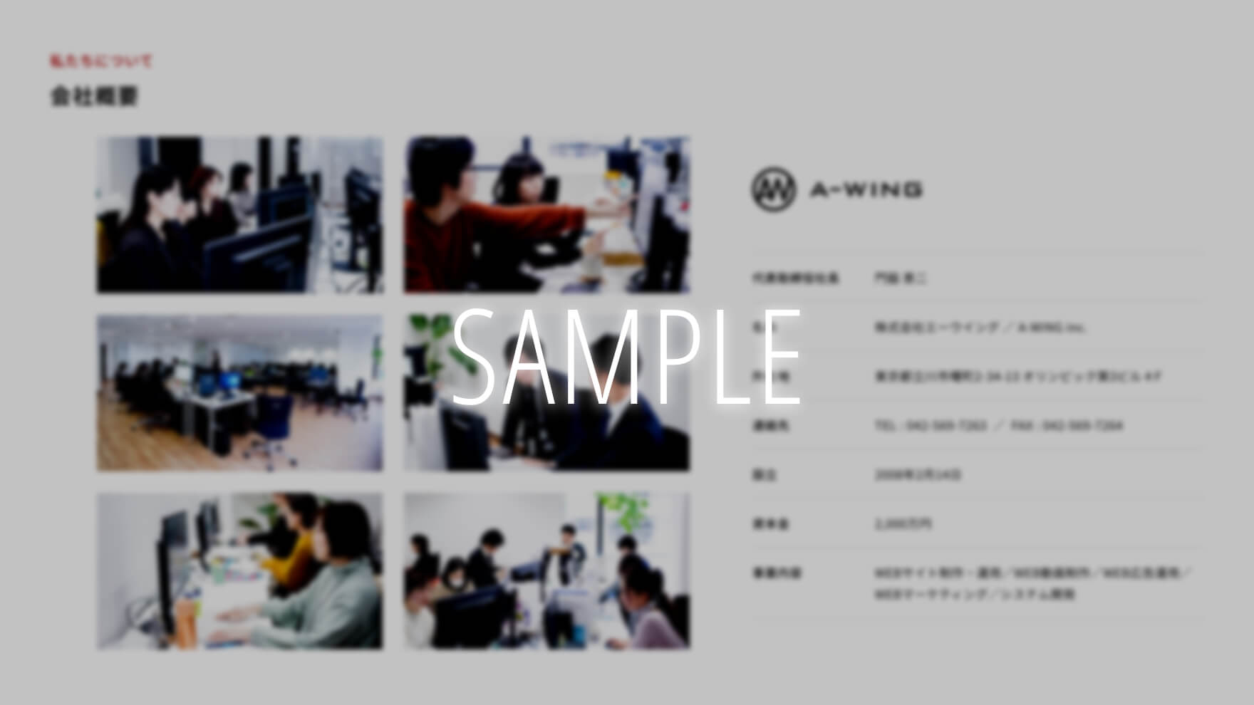 会社案内・実績ダウンロード 社内検討していただく方に向け、実績などをまとめた資料をPDFでご案内をしております。 以下項目にご入力の上、ダウンロードボタンを押してください。 個人情報保護方針をご覧いただき、内容に同意の上ダウンロードをお願いいたします。 ダウンロードサンプル