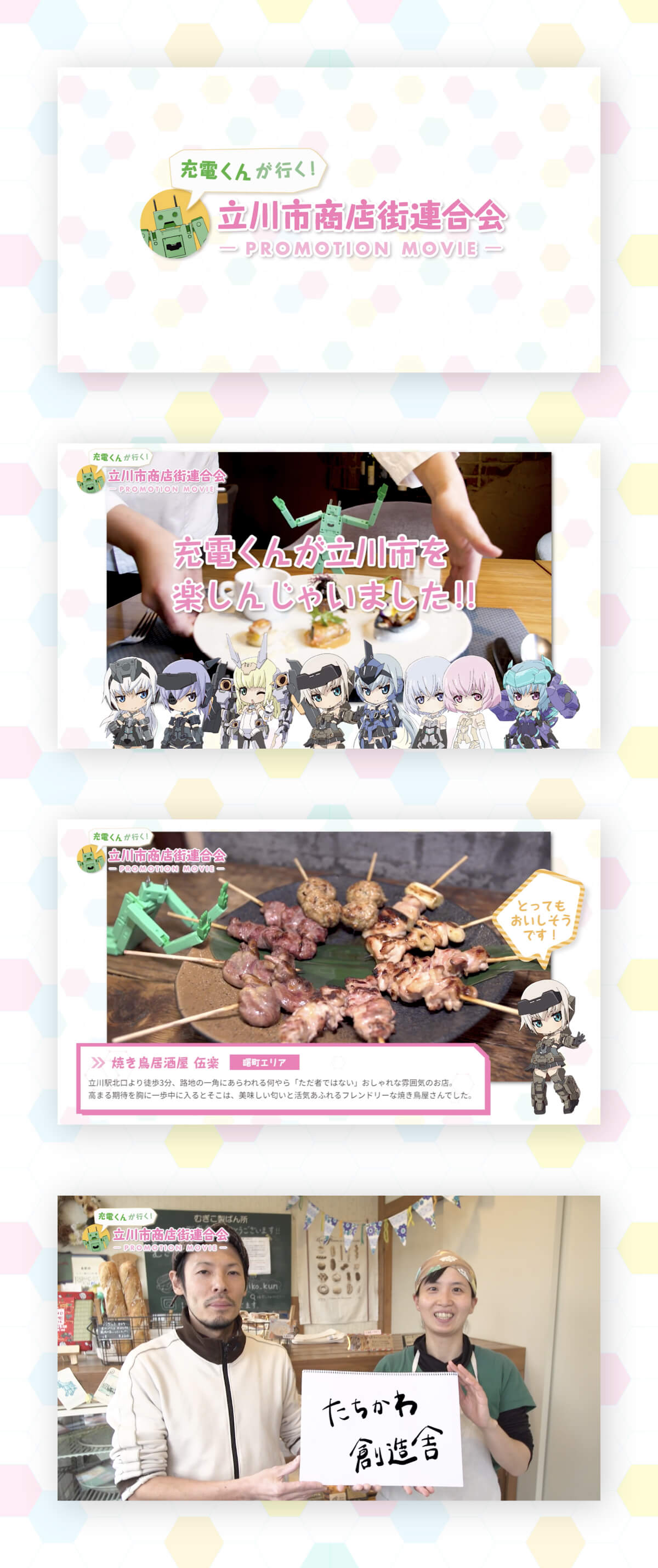 最近では、ウェブサイトだけではなく、動画を使うことも増えてきました。動画はテキストに比べて、圧倒的な情報量で短い時間で魅力を伝えることができるツールです。商店街の魅力をフレームアームズ・ガールのキャラクター、充電くんが伝える、「充電くんが行く!」では、楽しく街の魅力を配信し、街の魅力に興味のある人だけでなく、フレームアームズ・ガールファンに訴求することもできました。