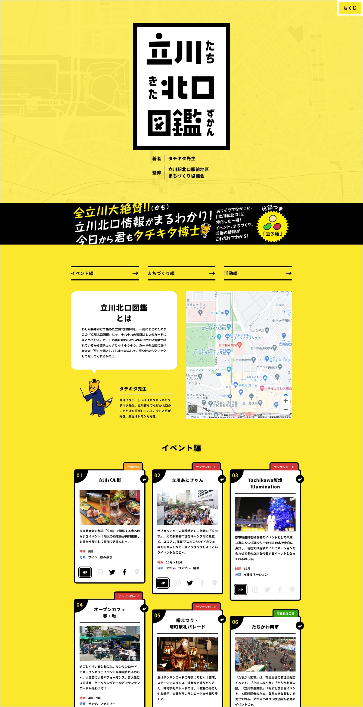 立川駅北口の情報がまるわかり!「立川北口図鑑」では、昭和記念公園やサンサンロード 、商店街などで開催される様々なイベント・まちづくり情報を紹介中。花火大会、あにきゃん、箱根駅伝予選会、楽市、ファーレアートなど、立川北口には注目のイベントが目白押し!ぜひご覧ください。